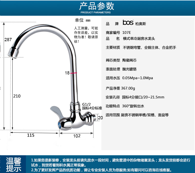 單冷橫式廚房龍頭
