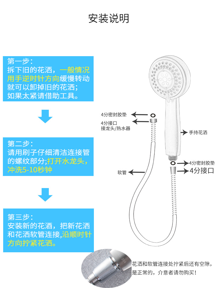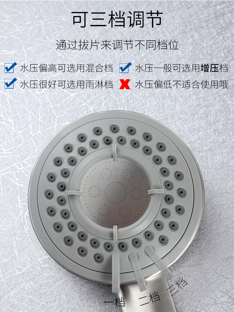三檔調(diào)節(jié)/SUS304不銹鋼增壓花灑/可拆洗